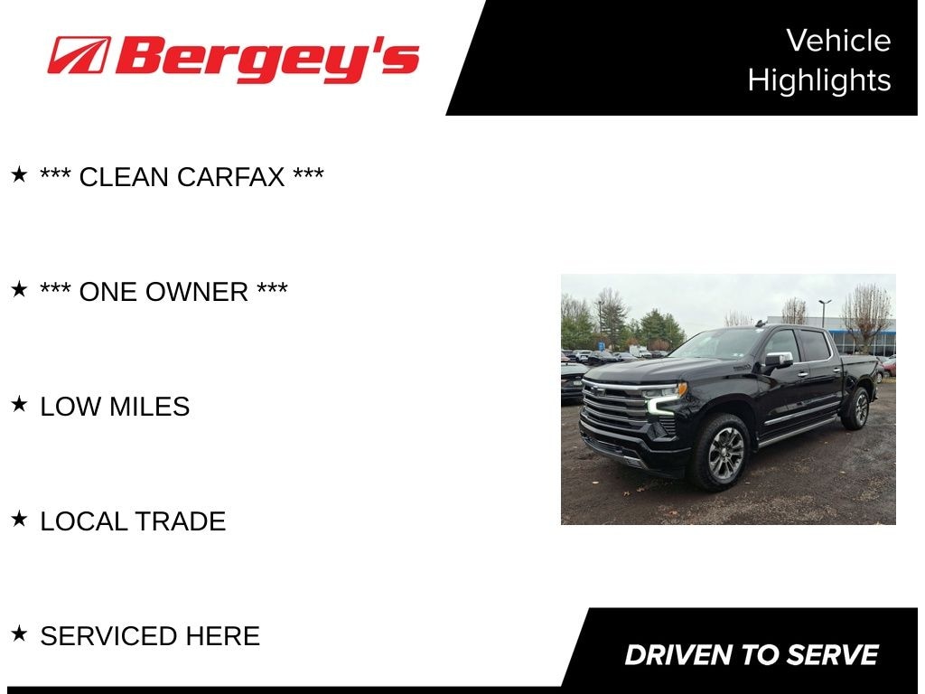 Command the road with luxury and power in the premium 2023 Chevrolet Silverado 1500 High Country, now available at Bergeys Chevrolet in Colmar, PA, your destination for top-tier trucks. This Silverado High Country rises above competitors in Quakertown and Doylestown with its upscale interior, advanced technology, impressive towing capability, and smooth, confident performance that makes every drive feel first-class. If you're comparing high-end pickup trucks or searching for the best 2023 Chevy Silverado 1500 High Country deals near Colmar, this refined yet rugged powerhouse delivers unmatched capability, comfort, and style.