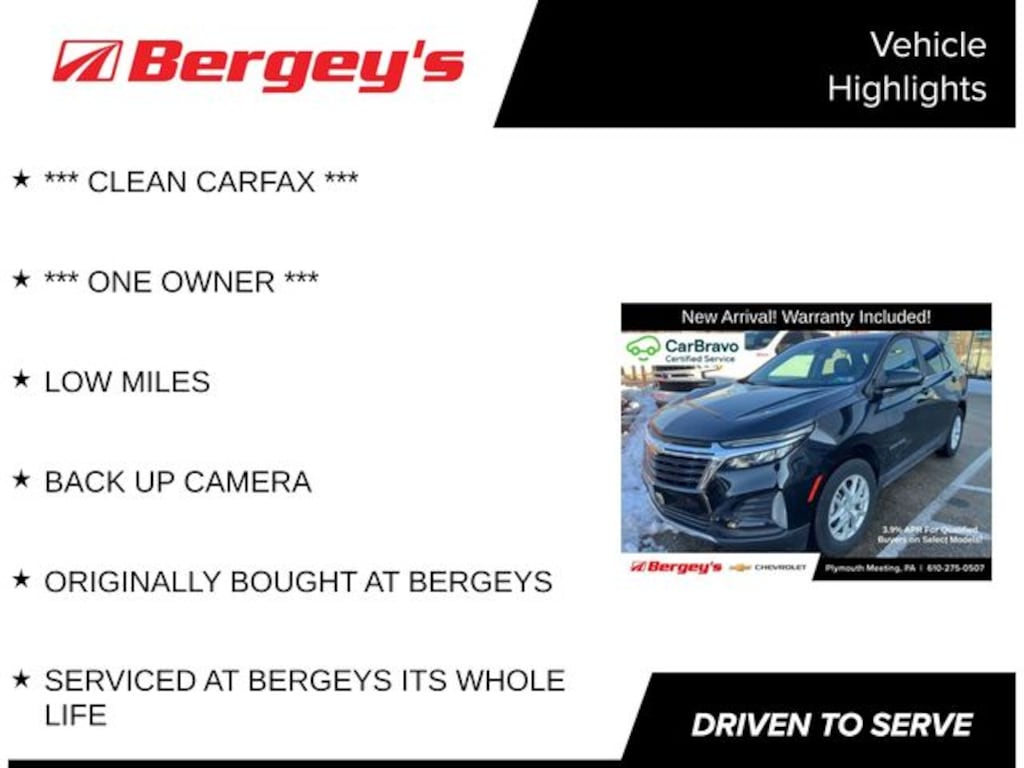 Recent Arrival! *** CLEAN CARFAX ***, *** ONE OWNER ***, LOW MILES, BACK UP CAMERA, ORIGINALLY BOUGHT AT BERGEYS, SERVICED AT BERGEYS ITS WHOLE LIFE, AWD. Certified. Certification Program Details: *6-Month/6,000-Mile Bumper-to-Bumper Limited Warranty*, whichever comes first, in addition to any remaining original factory Bumper-to-Bumper warranty. See participating dealer and warranty booklet for limited warranty eligibility and coverage details, including limitations and exclusions. *Except for non-GM vehicles in the State of California, where coverage will be provided by a vehicle service contract. Odometer is 22057 miles below market average!