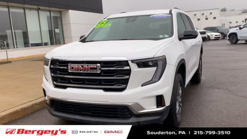Certified Vehicle!This 2025 GMC Acadia Elevation is a remarkable SUV that combines style, performance, and advanced technology. With its sleek white exterior and well-appointed interior, this Acadia is a true head-turner. Let's dive into the impressive features that make this vehicle a must-consider for your next family adventure.- 1-OWNER- CERTIFIED- NEW PA INSPECTION- ORIGINAL MSRP $44,395Powered by a 2.5L DOHC engine and paired with an 8-Speed Automatic transmission, this Acadia delivers an exceptional blend of power and efficiency, with an impressive 20 city/27 highway MPG rating. The advanced all-wheel-drive system provides confident handling and traction, ensuring a smooth and secure ride in any conditions.The GMC Acadia Elevation's interior is a true sanctuary of comfort and convenience. Boasting a premium Bose audio system, a large touchscreen infotainment display, and seamless smartphone integration through Apple CarPlay and Android Auto, this SUV keeps you connected and entertained on the go. The spacious 8-passenger seating configuration and ample cargo space make it the perfect companion for family adventures or weekend getaways.Certified Vehicle!- 172 Point Inspection- Roadside Assistance- Warranty Deductible: $0- Transferable Warranty- Vehicle History- Limited Warranty: 12 Month/12,000 Mile (whichever comes first) from certified purchase date- Powertrain Limited Warranty: 72 Month/100,000 Mile (whichever comes first) from original in-service date- 24 months/24,000 miles (whichever comes first) Certified Pre-Owned Scheduled Maintenance Plan and 3 days/150 miles (whichever comes first) Vehicle Exchange Program. SiriusXM 3-month trial subscriptionWith its impressive safety features, including a suite of advanced driver assistance technologies, the Acadia Elevation provides you and your loved ones with the peace of mind you deserve. From automatic emergency braking to lane departure warning, this SUV is designed to keep you safe on the road.At just $32,895, this 2025 GMC Acadia Elevation represents an exceptional value. As a Certified Pre-Owned vehicle, it has been meticulously inspected and comes with a comprehensive warranty, ensuring your investment is protected. Don't miss the opportunity to experience the versatility, style, and technology that this remarkable SUV has to offer. Schedule a test drive today and discover why the Acadia Elevation should be your next family vehicle.