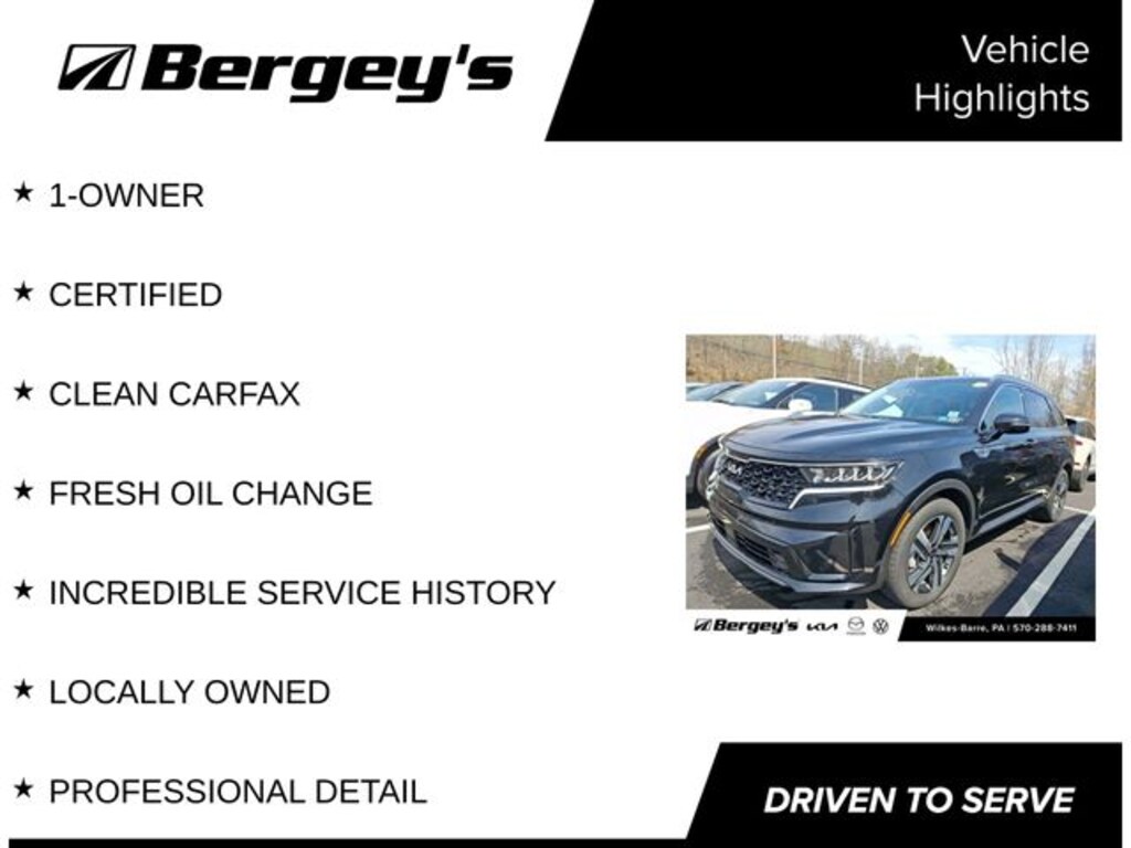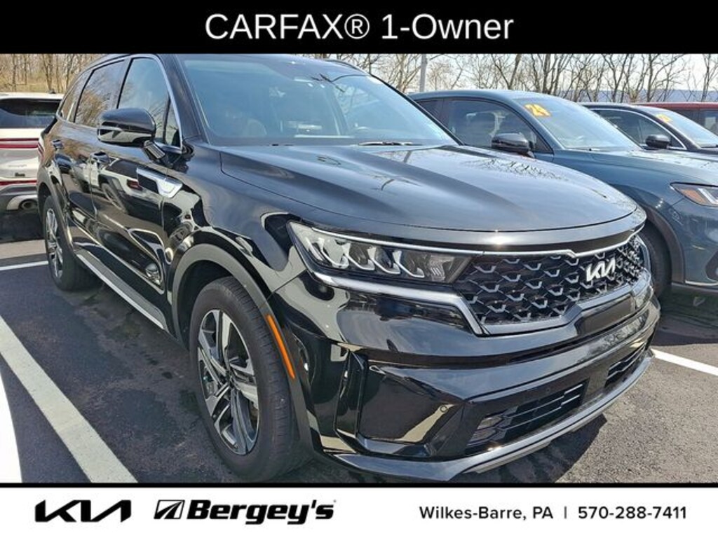 Certified. Aurora Black 2023 Kia Sorento Hybrid EX AWD 6-Speed Automatic 1.6L I4 DGI Hybrid Turbocharged DOHC 16V LEV3-ULEV70 1-OWNER, CERTIFIED, CLEAN CARFAX, FRESH OIL CHANGE, INCREDIBLE SERVICE HISTORY, LOCALLY OWNED, PROFESSIONAL DETAIL, 1.6L I4 DGI Hybrid Turbocharged DOHC 16V LEV3-ULEV70.