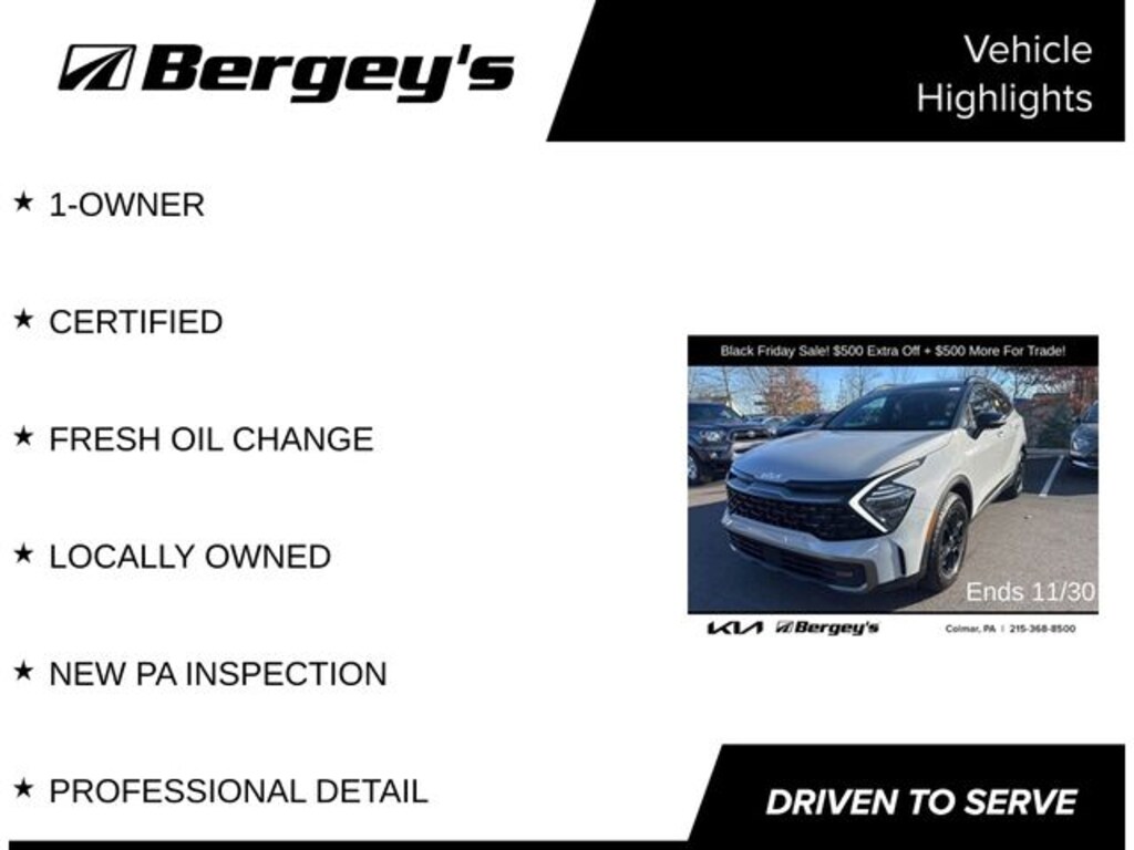 Certified. Wolf Gray/Ebony Black Roof 2023 Kia Sportage X-Pro Prestige AWD 8-Speed Automatic I4 1-OWNER, CERTIFIED, FRESH OIL CHANGE, LOCALLY OWNED, NEW PA INSPECTION, PROFESSIONAL DETAIL, AWD.