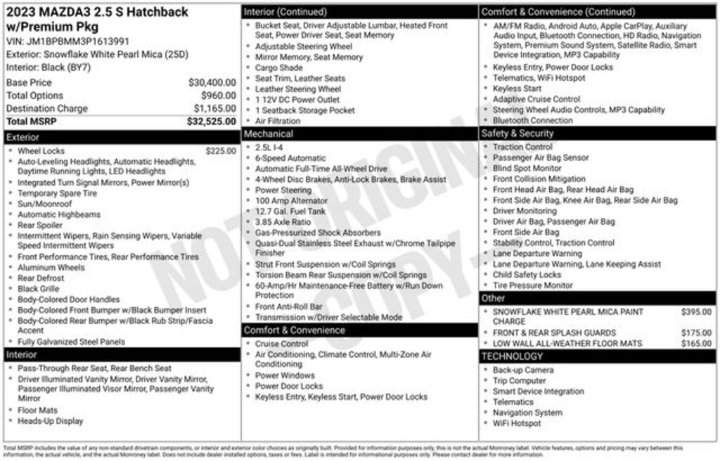 Snowflake White Pearl Mica 2023 Mazda Mazda3 2.5 S Premium Package AWD 6-Speed Automatic I4