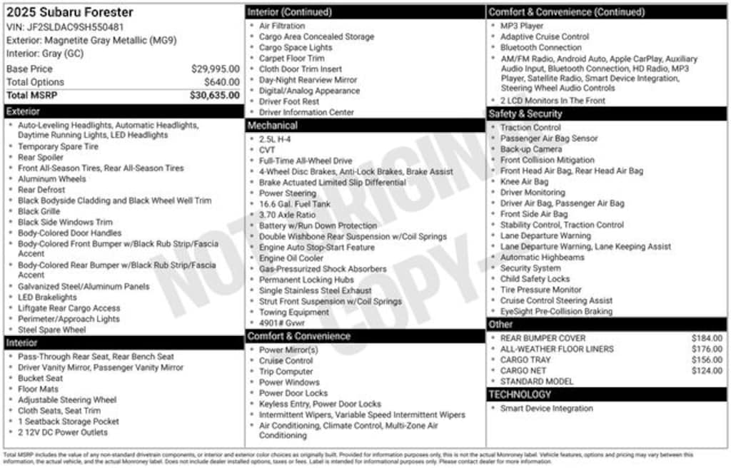 Purchased my 2025 Subaru Forester Sport and love the new body style and interior improvements of a quieter and more comfortable ride. This is my 4th Forester and so far the best one. I also got the optional package that has the power lifgate and the Harmon Kardon 11 speaker sound system which is well worth it since previous stock audio was not good. This one Rock's 🤟 I have always got Great trade in value from my Forester's which is a plus when purchasing a new vehicle. My only negatives are the infotainment takes time to get use to it and you have to look down to see it. And as others mentioned the cup holders seem to far back.