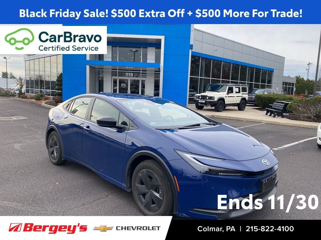 Turn heads and save fuel in style with the sleek and modern 2025 Toyota Prius Nightshade, now available at Bergeys Chevrolet in Colmar, PA, your unexpected hotspot for standout hybrid deals. This Prius Nightshade shines against competitors in Hatfield and Flemington, NJ with its bold blacked-out accents, exceptional fuel efficiency, advanced tech features, and famously smooth hybrid performance that makes every commute feel smart and effortless. If you're comparing the latest hybrid cars or searching for the best 2025 Toyota Prius Nightshade deals near Colmar, this eye-catching, eco-friendly ride delivers unbeatable efficiency, modern flair, and undeniable value.