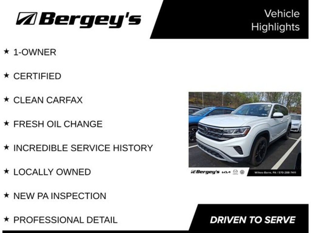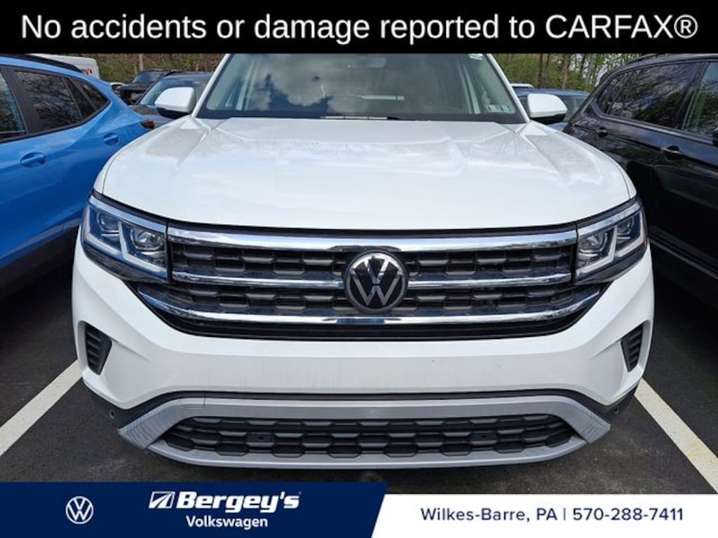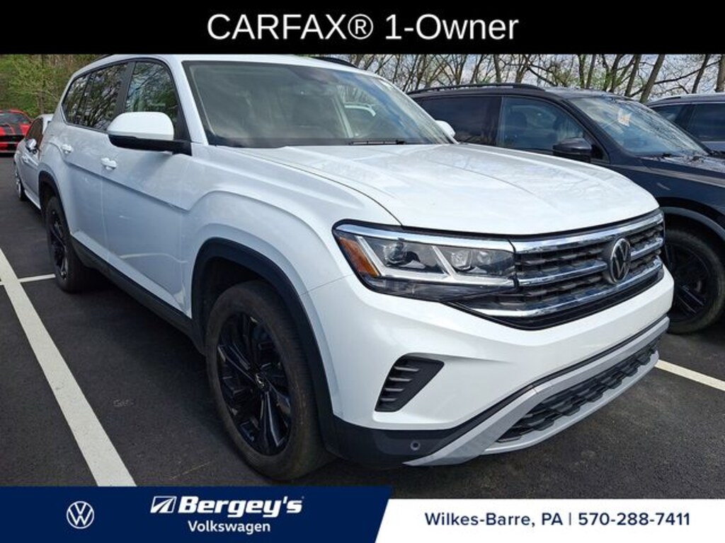 Certified. White 2023 Volkswagen Atlas 3.6L V6 SE w/Technology AWD 8-Speed Automatic with Tiptronic 3.6L VR6 1-OWNER, CERTIFIED, CLEAN CARFAX, FRESH OIL CHANGE, INCREDIBLE SERVICE HISTORY, LOCALLY OWNED, NEW PA INSPECTION, PROFESSIONAL DETAIL.