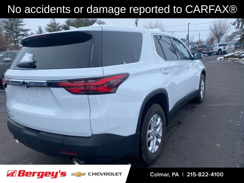 Recent Arrival! *** CLEAN CARFAX ***, *** ONE OWNER ***, LOW MILES, LOCAL TRADE, SERVICED HERE. Clean CARFAX. CARFAX One-Owner. Odometer is 41807 miles below market average!CarBravo Limited Bumper-to-Bumper Warranty When you choose a certified used vehicle less than 10 model years old and with less than 100,000 miles, youâll get 6-month/6,000-mile * limited bumper-to-bumper warranty coverage with no deductible. Ownership Benefits: *Courtesy Transportation *24-Hour roadside assistance *1-month trial of Onstar Connected Services or Onstar Guardian app *3-month trial of SiriusXM *Support from one of the largest nationwide service networks *2023 Summit White Chevrolet Traverse AWD 3.6L V6 SIDI VVT 9-Speed Automatic