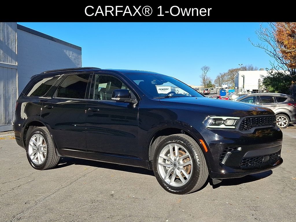 Certified. DB Black Crystal Clearcoat 4D Sport Utility CARFAX One-Owner. 2024 Dodge 18/25 City/Highway MPG Durango GT Plus AWD 8-Speed Automatic 3.6L V6 24V VVTAWD, 1-Year Trial (Registration Required), 10.1" Touchscreen Display, 115V Auxiliary Power Outlet, 180 Amp Alternator, 4G LTE Wi-Fi Hot Spot, 7 & 4 Pin Wiring Harness, Adaptive Cruise Control w/Stop, Apple CarPlay, Auto-Dimming Exterior Driver Mirror, Black Roof Rails, Blind Spot w/Trailer Detection, Class IV Receiver Hitch, Connected Travel & Traffic Services, Disassociated Touchscreen Display, Dual Remote USB Port - Charge Only, Exterior Mirrors w/Heating Element, Exterior Mirrors w/Memory, Exterior Mirrors w/Supplemental Signals, Floor Console w/Leather Armrest, For Details Visit DriveUconnect.com, Full Speed Forward Collision Warning Plus, Global Telematics Box Module (TBM), Gloss Black Exterior Mirrors, Google Android Auto, GPS Antenna Input, GPS Navigation, HD Radio, Heated Second Row Seats, Heavy-Duty Engine Cooling, Integrated Center Stack Radio, Integrated Roof Rail Crossbars, Integrated Voice Command w/Bluetooth, Leather Trimmed Bucket Seats, Leather Wrapped Door Panels, LED Auxiliary Low Beam & Turn Signal, Power 6x9 Multi-Function Foldaway Mirrors, Power 8-Way Driver Memory 8-Way Passenger Seats, Power Driver/Passenger 4-Way Lumbar Adjust, Power Sunroof, Power Tilt & Telescopic Steering Column, Quick Order Package 2BG GT Plus, Radio: Uconnect 5 Nav w/10.1" Display, Radio/Driver Seat/Mirrors Memory, Rear Load Leveling Suspension, Red Accent Stitching, SiriusXM Guardian - Included Trial (B), SiriusXM w/360L, Trailer Brake Control, USB Host Flip, Ventilated Front Seats.