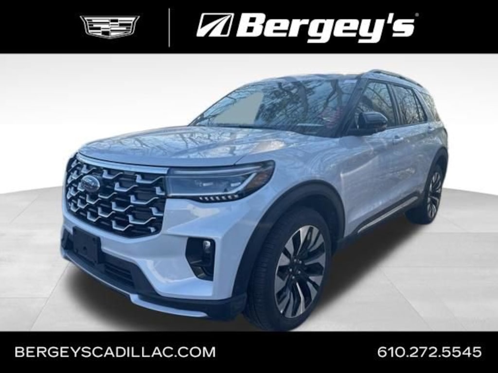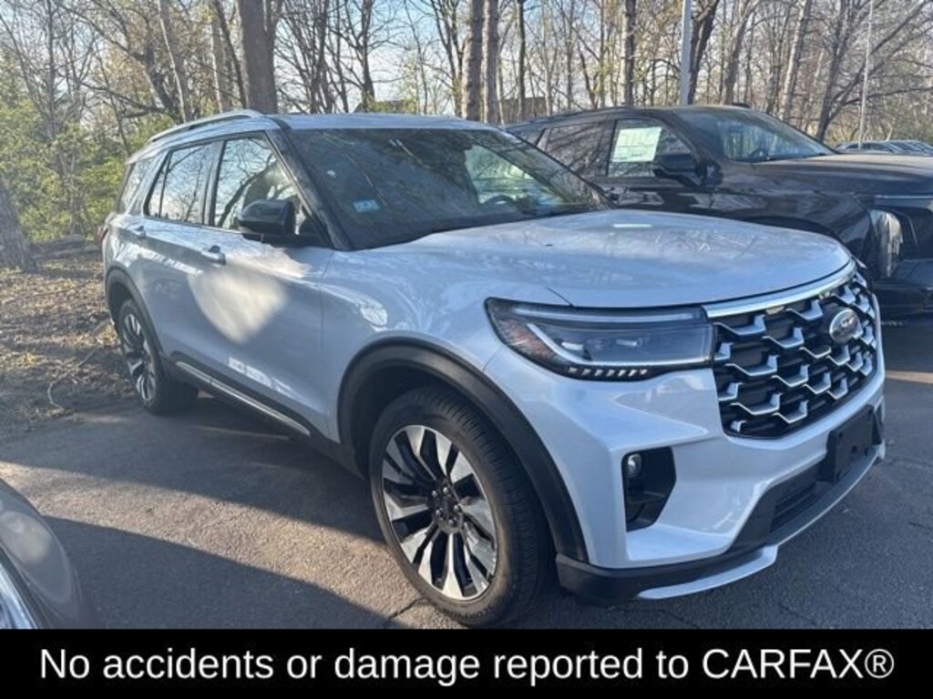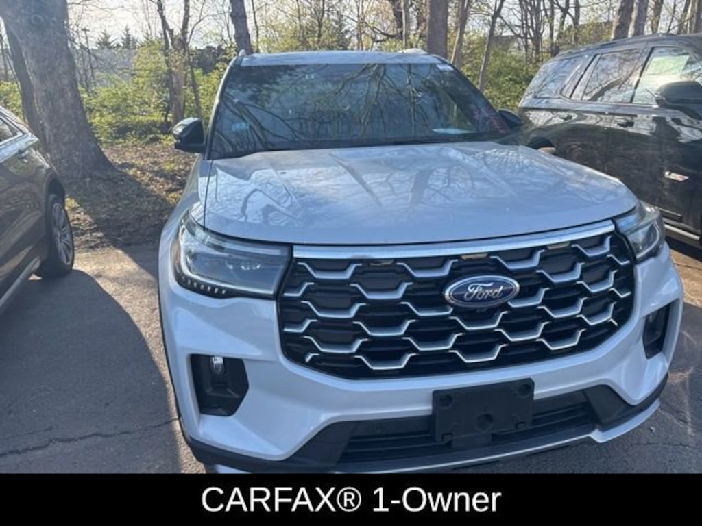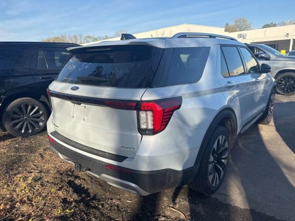 4WD. CARFAX One-Owner. White Metallic 2025 Ford Explorer Platinum 4WD 10-Speed Automatic 2.3L EcoBoost I-4