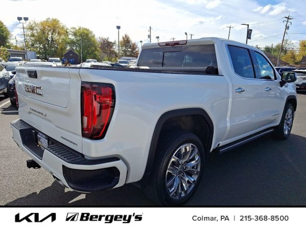 White Frost Tricoat 2023 GMC Sierra 1500 Denali 4WD 10-Speed Automatic EcoTec3 6.2L V8 10-Speed Automatic, 4WD, Atmosphere/Brownstone Leather.