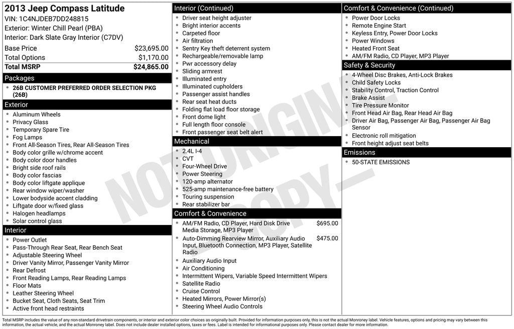Recent Arrival! Winter Chill Pearlcoat 2013 Jeep Compass Latitude 4WD CVT 2.4L I4 DOHC 16V Dual VVT