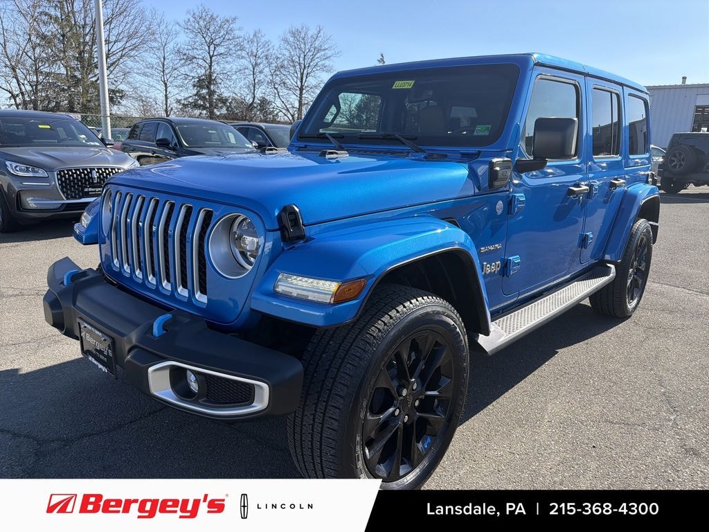 2023 JEEP WRANGLER SAHARA 4XE HARD TOP 2.0L 4WD w/ COLD WEATHER PKG AND TRAILER TOW AND HEAVY DUTY ELECTRICAL GROUP! ONE OWNER! CLEAN CARFAX! ORIGINAL MSRP: $62,520! 20 WHEELS, HEATED SEATS, APPLECARPLAY! BALANCE OF FACTORY WARRANTY! PA State Inspection & First Oil Change At Bergeys! Hydro Blue Exterior, Black Leather Interior. Vehicle Features: 2.0L I4 DOHC DI Turbo PHEV Engine, 8-Speed Automatic Transmission, 4 Wheel Drive, Heated Front Seat, Heated Steering Wheel, Remote Start, Leather Wrapped Steering Wheel, Auxiliary Switches, 700-Amp Maintenance Free Battery, Class II Receiver Hitch, 7-Pin And 4-Pin Wiring Harness, Windshield Tie Down, Body Color 3 Piece Hard Top, Rear Window Defroster/Wiper/Washer, Side Steps, 20 x 8 Painted Black Aluminum Wheels, Fully Body Color Fender Flares, Blue Tow Hooks, Tinted Windshield Glass, Variable Intermittent Windshield Wipers, Power Heated Mirrors, LED Premium Reflector Headlamps, Headlamps W/ Turn-Off Time Delay, Automatic Headlamps, Uconnect Navigation W/ 8.4 Touch Screen Display, 8.4 Radio And Premium Audio Group, Apple CarPlay, Google Android Auto, Satellite Radio Ready, Jeep Connect 4G LTE Wi-Fi Hot Spot, Full Function Media Hub W/ 2-USB Plus Aux Port, 115-Volt Auxiliary Outlet, Integrated Voice Command, Rear 60/40 Folding Seat, Power Front Windows w/ One-Touch Down, Air Conditioning W/ Automatic Temperature Control, Ambient LED Interior Lighting, Automatic Dimming Rear View Mirror, Premium Wrapped Steering Wheel, Steering Wheel Mounted Audio Controls, 600-Amp Maintenance Free Battery, Battery Charge Indicator, Conventional Differential Front Axle w/ Disconnect, 3.73 Rear Axle Ratio, Hill Start Assist, Selec-Speed Control, Remote Keyless Entry, Rear Back-Up Camera, Power Locking Fuel Filler Door, Advanced Multistage Front Airbags, Supplemental Front Seat-Mounted Side Airbags, Front Door Passive Entry And Lock, Universal Garage Door Opener. Financing Available! Extended Service Contract Options Available! Please call or email to confirm vehicle availability. Check out our website for the complimentary Carfax report!