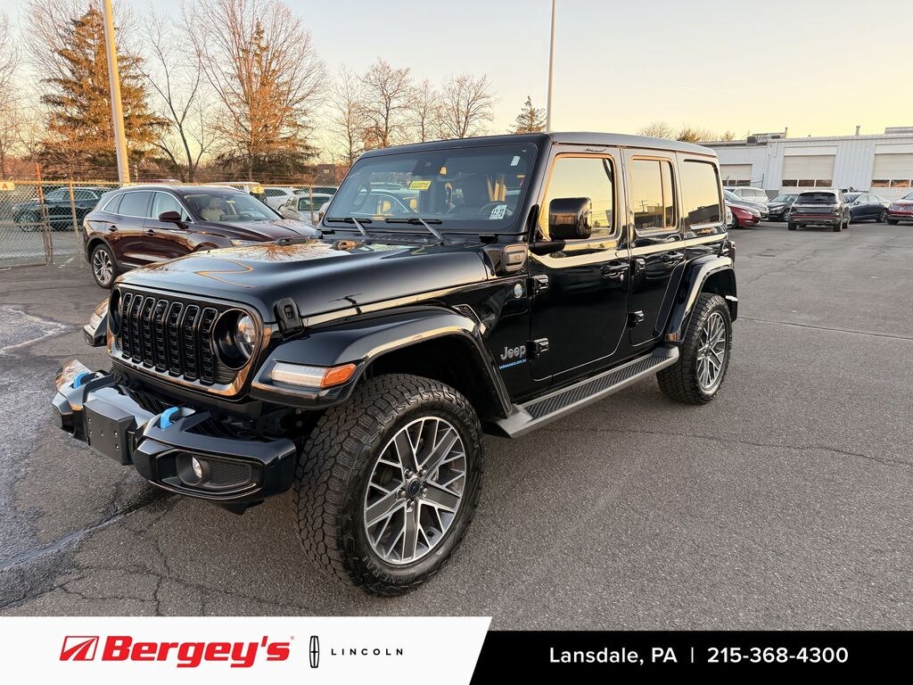 2024 JEEP WRANGLER 4-DOOR HIGH ALTITUDE 4XE SKYTOP 2.0L 4WD! ONE OWNER! CLEAN CARFAX! ORIGINAL MSRP $70,285! HEATED FRONT SEATS, HEATED STEERING WHEEL, 20 WHEELS! BALANCE OF FACTORY WARRANTY! PA State Inspection & First Oil Change At Bergeys! Black Exterior, Blac Leather Interior. Vehicle Features: 2.0L I4 DOHC DI TURBO PHEV Engine, 8-Speed Automatic Transmission, 4 Wheel Drive, Active Noise Control System, 20 x 8 Machined/ Painted Gray Wheels, Front LED Fog Lamps, LED Premium Reflector Headlamps, Daytime Running Lamp LED Accents, LED Tail Lamps, Blue Tow Hooks, Navigation w/ 12.3 Touch Screen Display, Alpine Premium Audio System, Apple CarPlay, Google Android Auto, Jeep Connect 4G LTE Wi-Fi Hot Spot, Satellite Radio Ready, 8-Way Power Adjustable Driver And Front Passenger Seat, Heated Front Seats, Heated Steering Wheel, Sky One-Touch Power Top, Body Color Front Bumper, Body Color Rear Bumper w/ Step Pads, Full Body Color Fender Flares, Integrated Off Road Camera, 3rd Gen Heavy-Duty 44 Front And Rear Axle, 3:73 Rear Axle Ratio, Anti Spin Differential Rear Axle, Conventional Differential Front Axle w/ Disconnect, Regenerative Anti-Lock 4 Wheel Disc Brakes, Full Speed Forward Collision Warning Plus, Blind Spot And Cross Path Detection, Rear Park Assist, Advanced Brake Assist, Adaptive Cruise Control w/ Stop, Electronic Stability Control, Electronic Roll Mitigation, Hill-Start Assist, Traction Control, Advanced Multi-Stage Front Airbags, Supplemental Front Seat-Mounted Side Airbags, Supplemental Side Airbags, Windshield w/ Corning Gorilla Glass, Acoustic Laminated Front Door Glass, Battery Charge Indicator, Jeep 4xe Power Box, Remote Start, Remote Keyless Entry. Financing Available! Extended Service Contract Options Available! Please call or email to confirm vehicle availability. Check out our website for the complimentary Carfax report!
