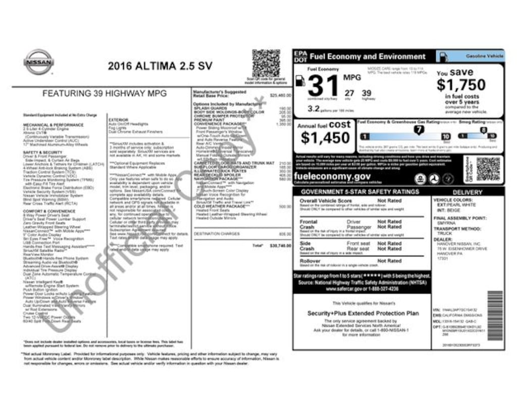 CVT with Xtronic. Pearl White 2016 Nissan Altima 2.5 SV FWD CVT with Xtronic 2.5L 4-Cylinder DOHC 16V