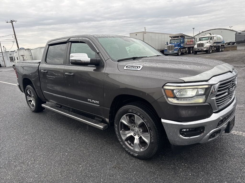 Certified. Granite Crystal Metallic Clearcoat 4D Crew Cab CARFAX One-Owner. 2023 Ram 17/22 City/Highway MPG 1500 Laramie 4WD 8-Speed Automatic HEMI 5.7L V8 Multi Displacement VVT eTorque 1-OWNER, CERTIFIED, CLEAN CARFAX, FRESH OIL CHANGE, LOCALLY OWNED, NEW PA INSPECTION, PROFESSIONAL DETAIL, #1 Seat Foam Cushion, 12" Touchscreen Display, 2nd Row In Floor Storage Bins, 3 Rear Seat Head Restraints, 3.92 Rear Axle Ratio, 4 Way Front Headrests, 4G LTE Wi-Fi Hot Spot, Apple CarPlay, Auto High Beam Headlamp Control, Blind Spot & Cross Path Detection, Bucket Seats, Center Console Parts Module, Class IV Receiver Hitch, Connected Travel & Traffic Services, Connectivity - US/Canada, Disassociated Touchscreen Display, Driver Seat Memory, Electric Shift-On-Demand Transfer Case, Foam Bottle Insert (Door Trim Panel), For Details, Visit DriveUconnect.com, For More Info, Call 800-643-2112, Front Door Accent Lighting, Front LED Fog Lamps, Front Seat Back Map Pockets, Full Length Upgraded Floor Console, Global Telematics Box Module (TBM), Google Android Auto, GPS Antenna Input, GPS Navigation, harman/kardon 19 Speaker Premium Sound, HD Radio, Heated Front Seats, Heated Steering Wheel, Integrated Center Stack Radio, Integrated Voice Command w/Bluetooth, Laramie Level B Equipment Group, Leather Trimmed Bucket Seats, LED Reflector Headlamps, ParkSense Front/Rear Park Assist w/Stop, Power 2-Way Driver Lumbar Adjust, Power 2-Way Passenger Lumbar Adjust, Power 8-Way Driver & Passenger Seats, Quick Order Package 27H Laramie, Radio: Uconnect 5 Nav w/12.0" Display, Rain Sensitive Windshield Wipers, Rear 60/40 Folding Seat, Rear Door Accent Lighting, Rear Power Sliding Window, Rear Underseat Compartment Storage, Rear Window Defroster, Remote Tailgate Release, SiriusXM Radio Service, SiriusXM w/360L, USB Host Flip, Ventilated Front Seats, Wheels: 20" x 9" Premium Paint/Polished.