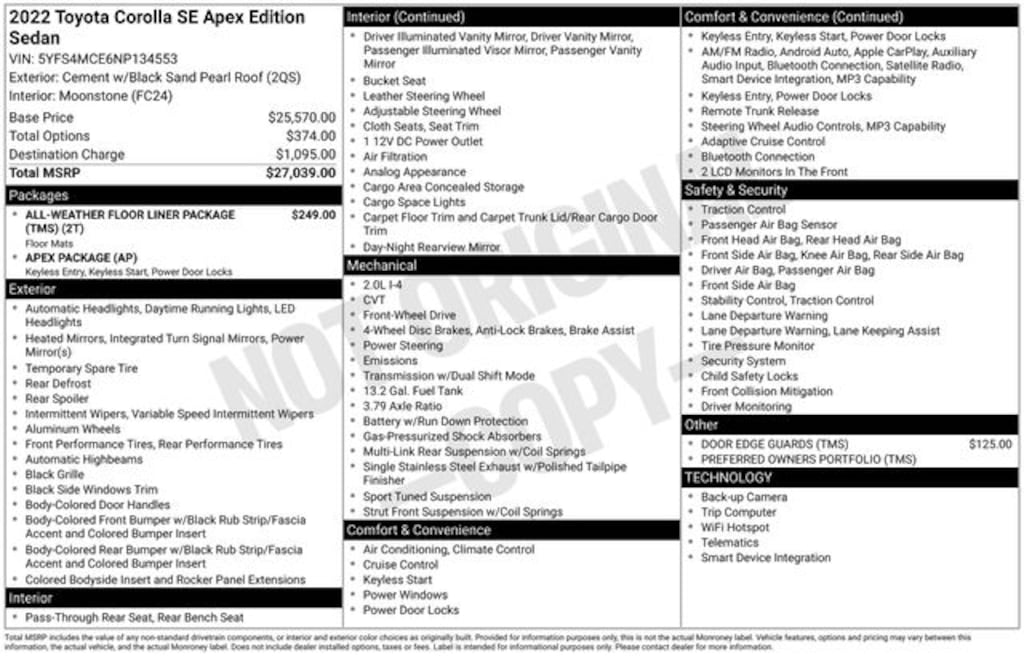 * The advertised price does not include sales tax, vehicle registration fees, other fees required by law, finance charges and any documentation charges. A negotiable administration fee, up to $115, may be added to the price of the vehicle.